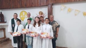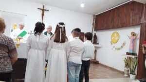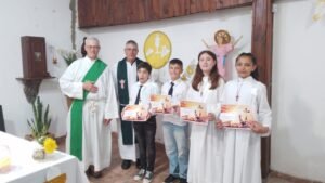 EL DOMINGO LOS CHICOS DE CATEQUESIS DE L CAPILLA DEL DIVINO NIÑO TUVIERON SU PRIMERA COMUNION